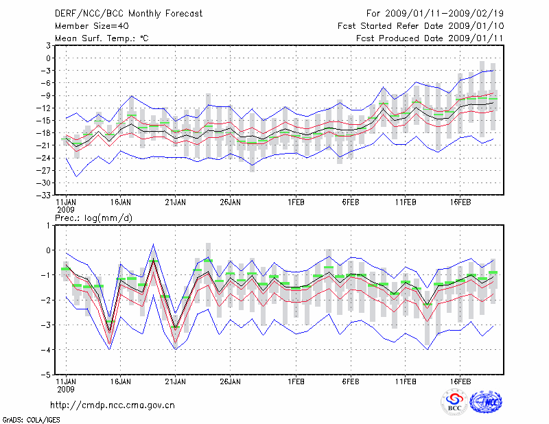 锡林浩特 (LAT:43.95 LON:116.07) 2009-01-11        预测