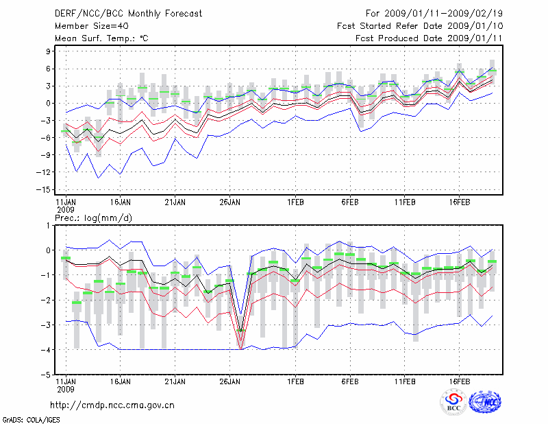 甘 孜 (LAT:31.62 LON:100.00) 2009-01-11        预测