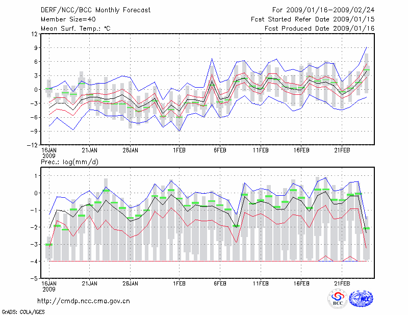 潍 坊 (LAT:36.70 LON:119.08) 2009-01-16        预测