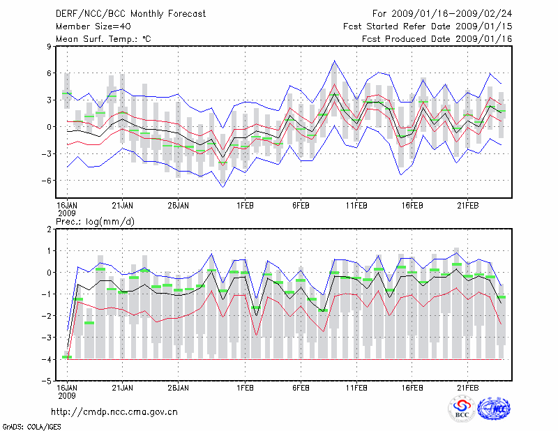 青 岛 (LAT:36.07 LON:120.33) 2009-01-16        预测