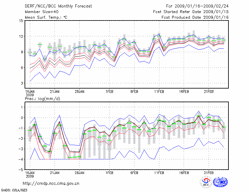 丽 江 (LAT:26.83 LON:100.47) 2009-01-16        预测
