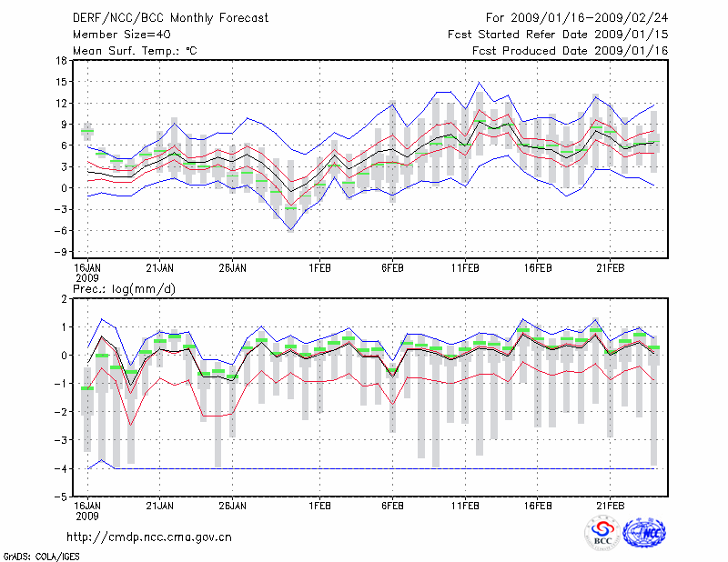 钟 祥 (LAT:31.17 LON:112.57) 2009-01-16        预测
