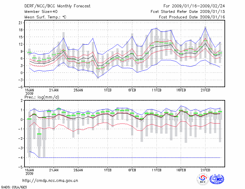 南 昌 (LAT:28.60 LON:115.92) 2009-01-16        预测
