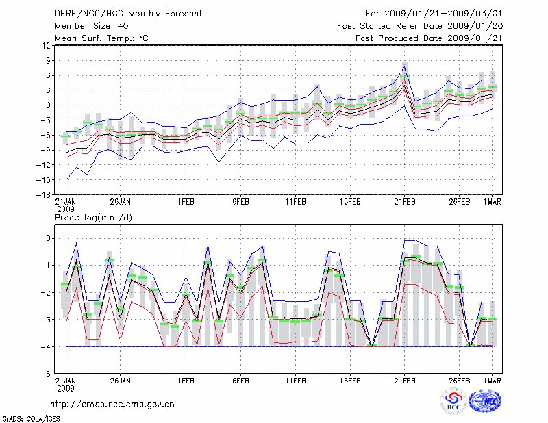 且 末 (LAT:38.15 LON:85.55) 2009-01-21        预测