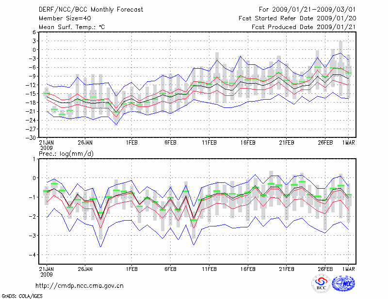 牡 丹 江 (LAT:44.57 LON:129.60) 2009-01-21        预测
