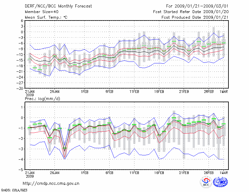 长 春 (LAT:43.90 LON:125.22) 2009-01-21        预测