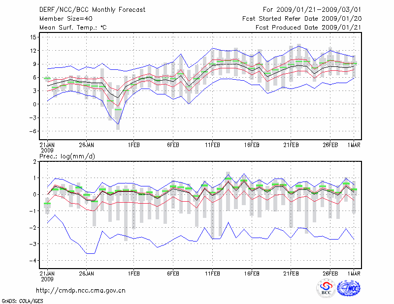 恩 施 (LAT:30.28 LON:109.47) 2009-01-21        预测