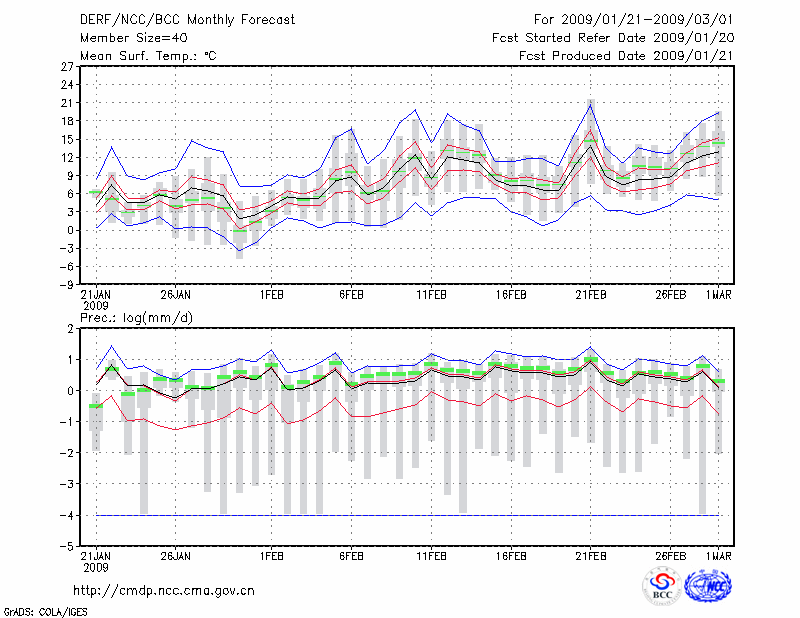 岳 阳 (LAT:29.38 LON:113.08) 2009-01-21        预测