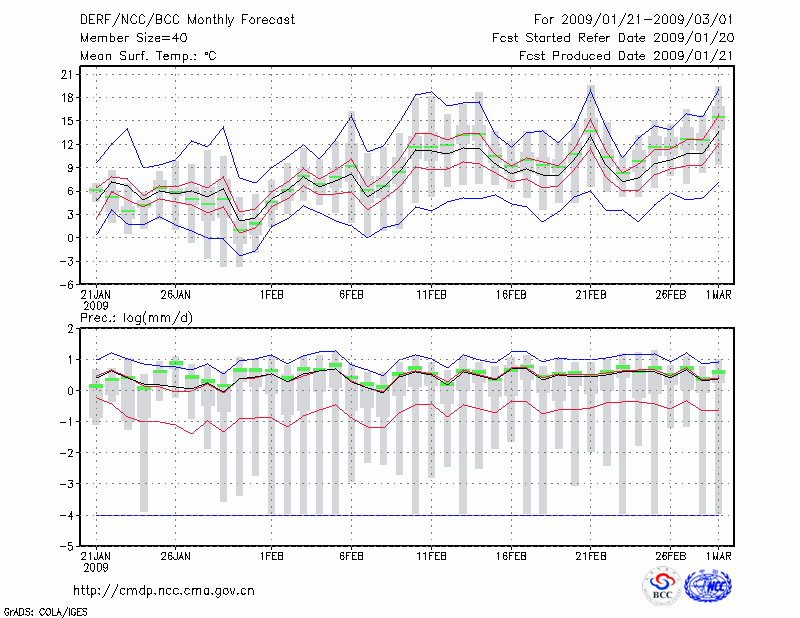 南 昌 (LAT:28.60 LON:115.92) 2009-01-21        预测