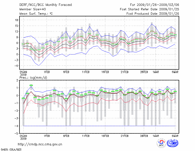 钟 祥 (LAT:31.17 LON:112.57) 2009-01-26        预测
