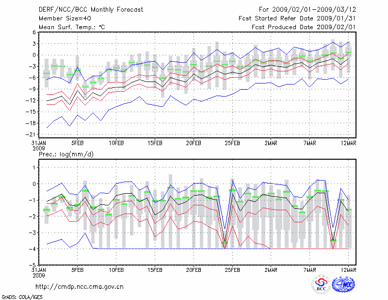 呼和浩特 (LAT:40.82 LON:111.68) 2009-02-01        预测
