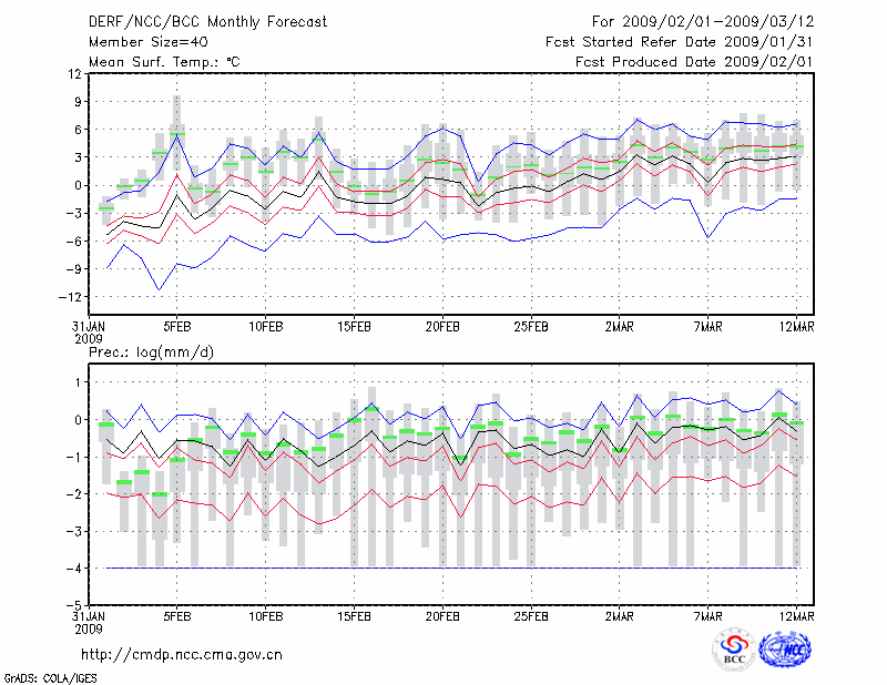 西 峰 镇 (LAT:35.73 LON:107.63) 2009-02-01        预测