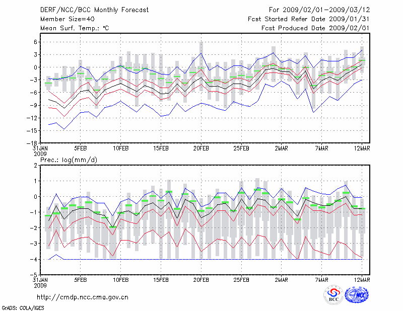 丹 东 (LAT:40.05 LON:124.33) 2009-02-01        预测