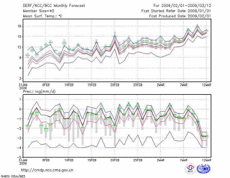 会 理 (LAT:26.65 LON:102.25) 2009-02-01        预测