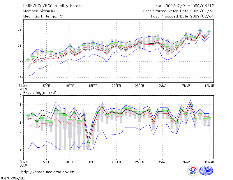 景 洪 (LAT:22.02 LON:100.80) 2009-02-01        预测