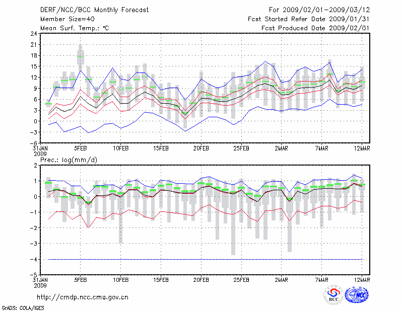 信 阳 (LAT:32.13 LON:114.05) 2009-02-01        预测