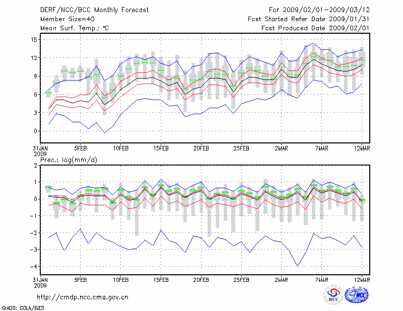 恩 施 (LAT:30.28 LON:109.47) 2009-02-01        预测