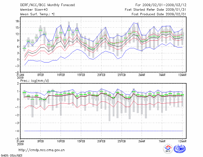 汉 口 (LAT:30.62 LON:114.13) 2009-02-01        预测