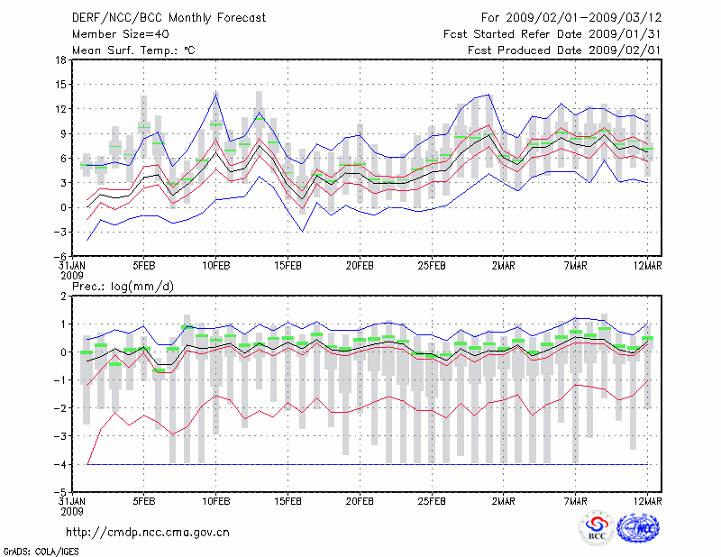 东 台 (LAT:32.87 LON:120.32) 2009-02-01        预测