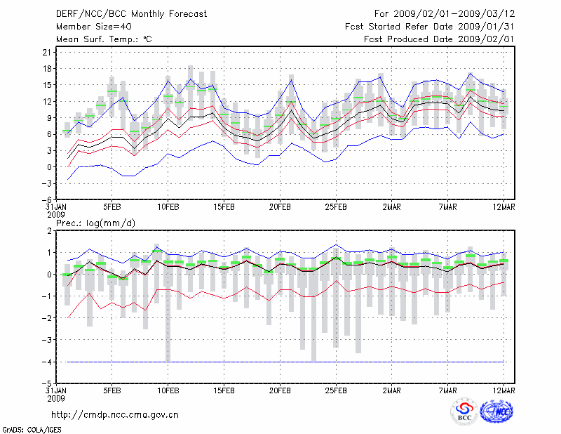 安 庆 (LAT:30.53 LON:117.05) 2009-02-01        预测