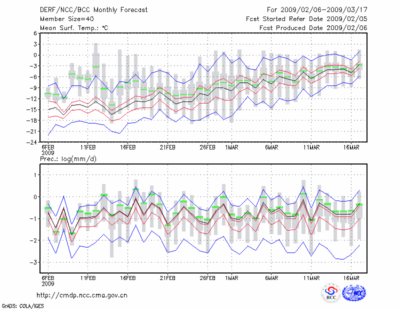 牡 丹 江 (LAT:44.57 LON:129.60) 2009-02-06        预测