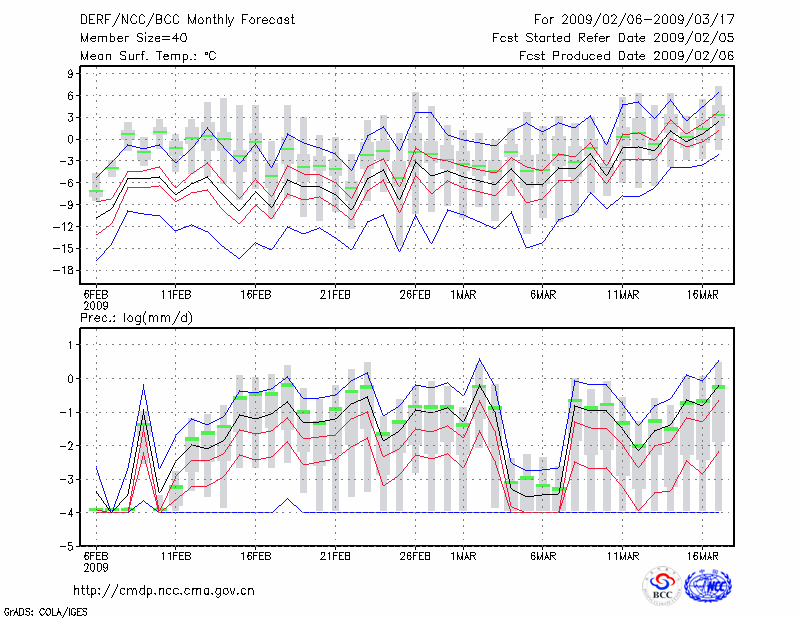 赤 峰 (LAT:42.27 LON:118.97) 2009-02-06        预测