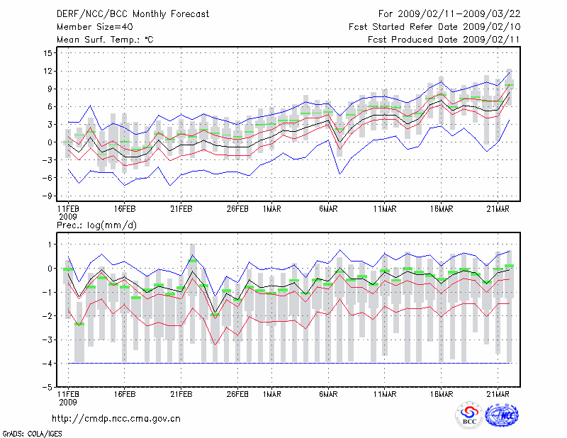 延 安 (LAT:36.60 LON:109.50) 2009-02-11        预测
