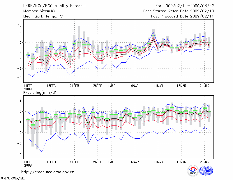 甘 孜 (LAT:31.62 LON:100.00) 2009-02-11        预测