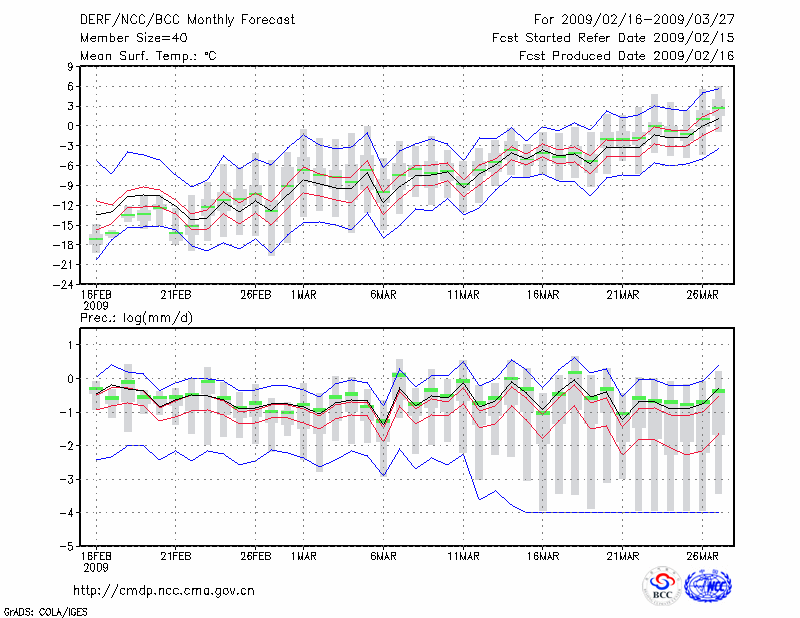 哈 尔 滨 (LAT:45.75 LON:126.77) 2009-02-16        预测