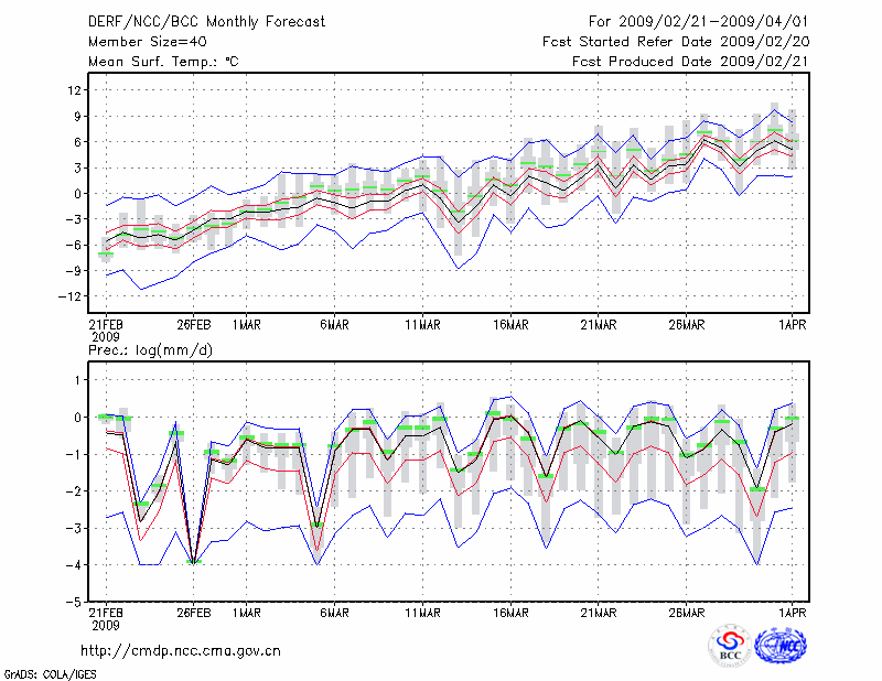 酒 泉 (LAT:39.77 LON:98.48) 2009-02-21        预测