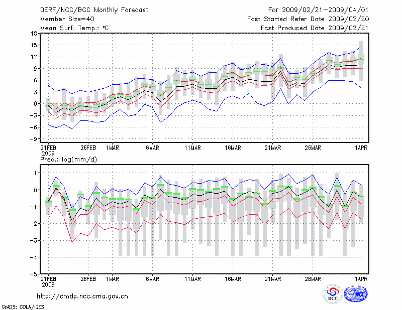 延 安 (LAT:36.60 LON:109.50) 2009-02-21        预测