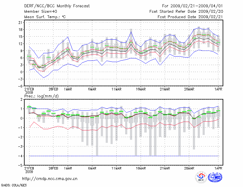 南 京 (LAT:32.00 LON:118.80) 2009-02-21        预测