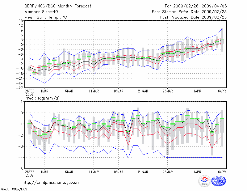 嫩 江 (LAT:49.17 LON:125.23) 2009-02-26        预测