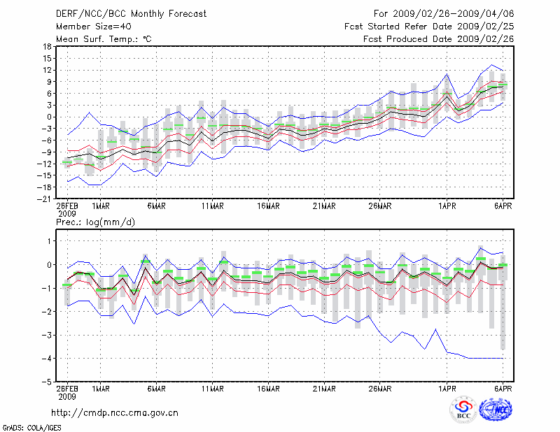牡 丹 江 (LAT:44.57 LON:129.60) 2009-02-26        预测