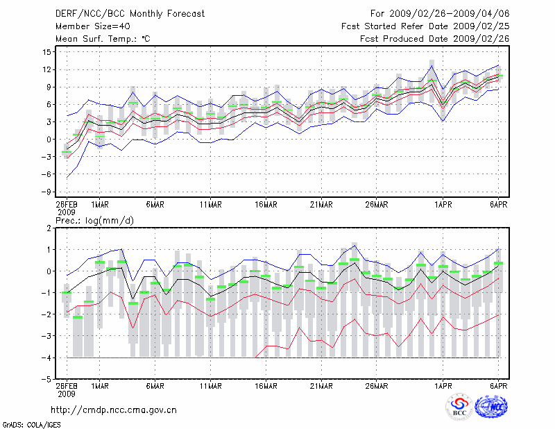 青 岛 (LAT:36.07 LON:120.33) 2009-02-26        预测