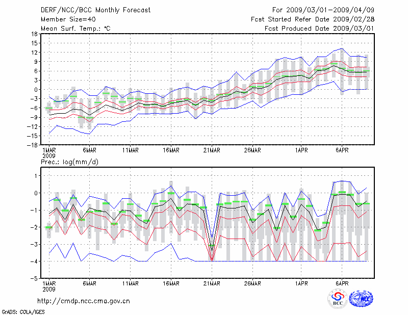 乌兰浩特 (LAT:46.08 LON:122.05) 2009-03-01        预测