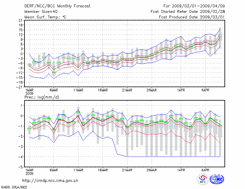 哈 尔 滨 (LAT:45.75 LON:126.77) 2009-03-01        预测