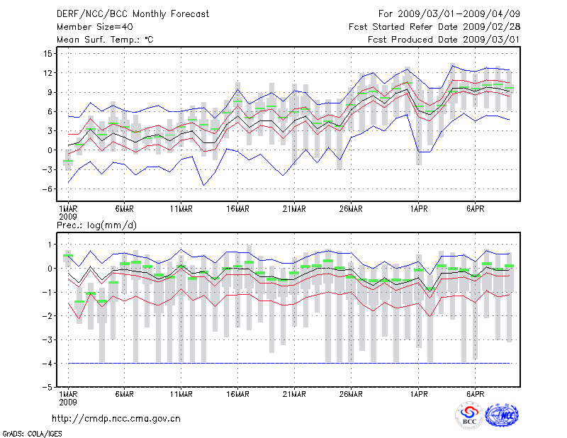 西 峰 镇 (LAT:35.73 LON:107.63) 2009-03-01        预测