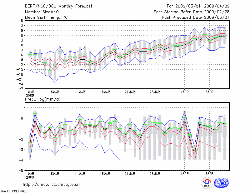 锡林浩特 (LAT:43.95 LON:116.07) 2009-03-01        预测
