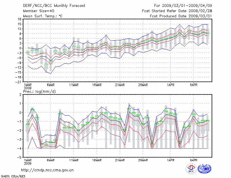 赤 峰 (LAT:42.27 LON:118.97) 2009-03-01        预测