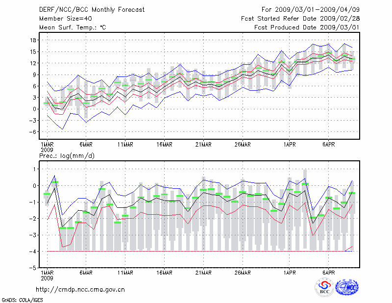 北 京 (LAT:39.93 LON:116.28) 2009-03-01        预测