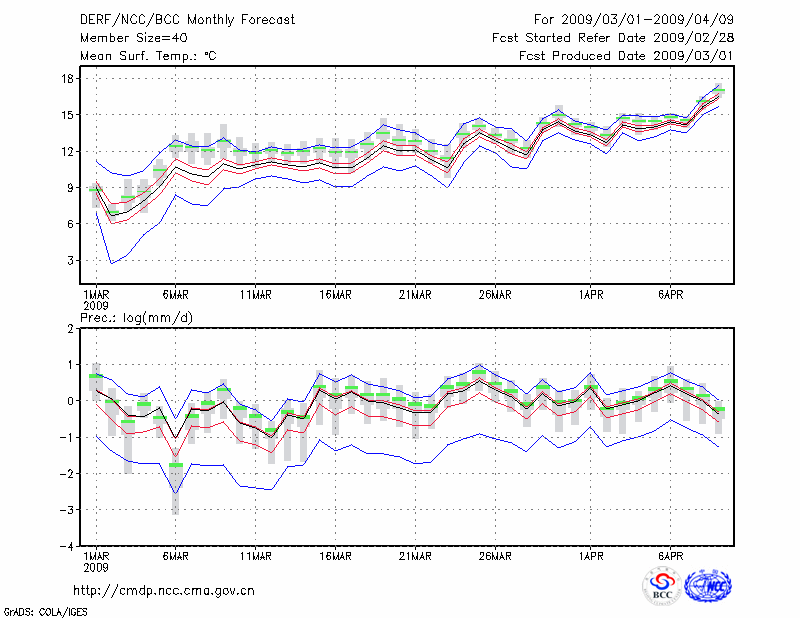 丽 江 (LAT:26.83 LON:100.47) 2009-03-01        预测