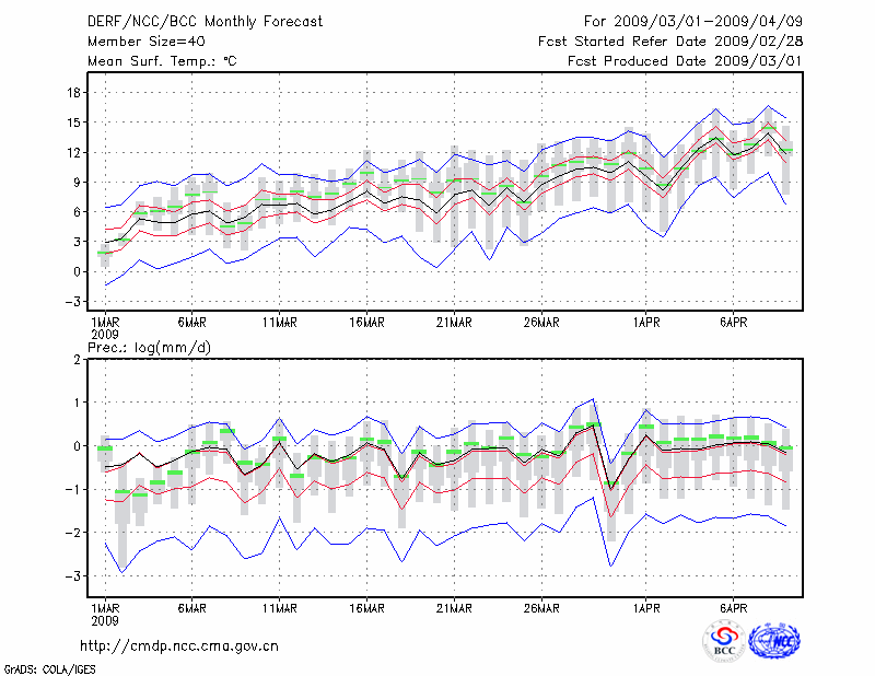 天 水 (LAT:34.58 LON:105.75) 2009-03-01        预测