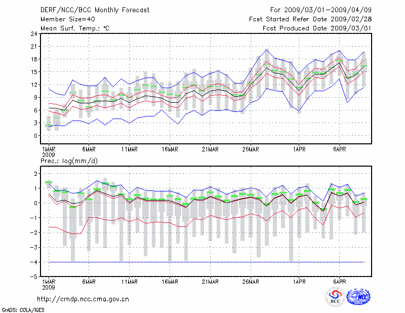 蚌 埠 (LAT:32.95 LON:117.37) 2009-03-01        预测
