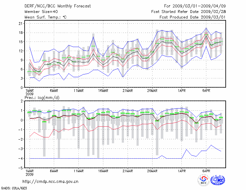 南 京 (LAT:32.00 LON:118.80) 2009-03-01        预测
