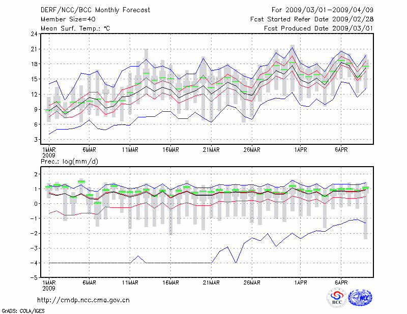 屯 溪 (LAT:29.71 LON:118.28) 2009-03-01        预测