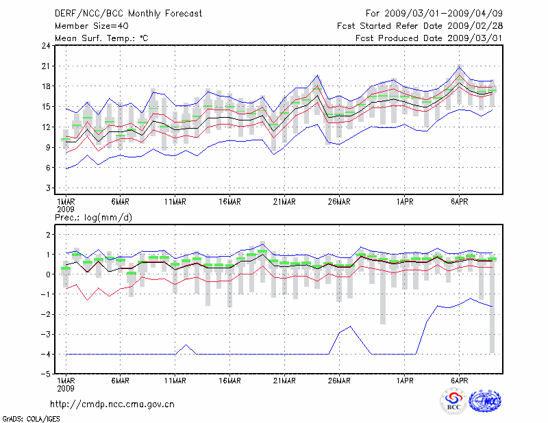 温 州 (LAT:28.02 LON:120.67) 2009-03-01        预测