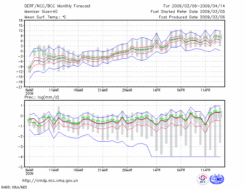 牡 丹 江 (LAT:44.57 LON:129.60) 2009-03-06        预测