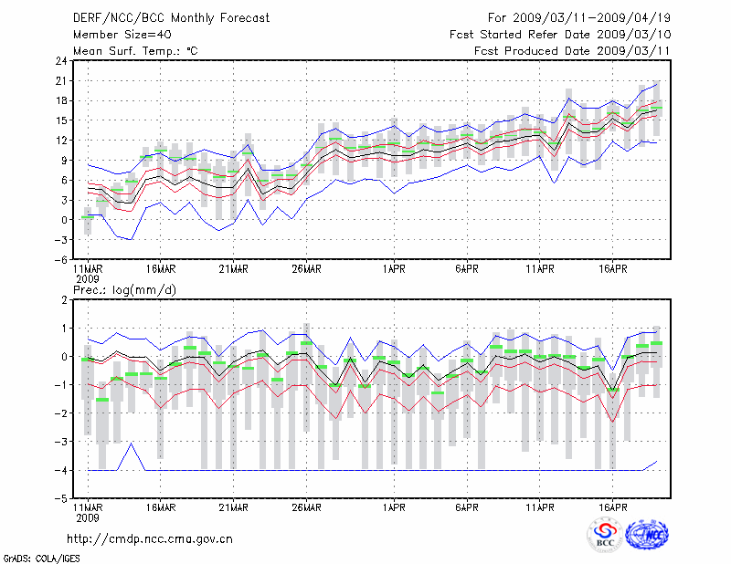 延 安 (LAT:36.60 LON:109.50) 2009-03-11        预测