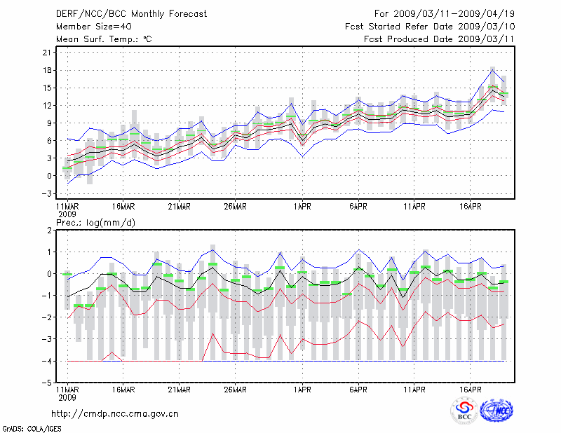 青 岛 (LAT:36.07 LON:120.33) 2009-03-11        预测